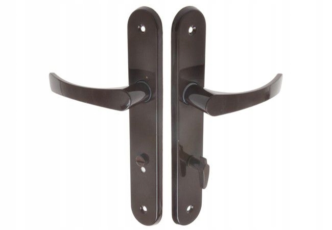 Klamka aluminiowa, malowana proszkowo na kolor brązowy. Solidna klamka, często wykorzystywana jest w starszym budownictwie oraz w mniej wymagających pomieszczeniach.