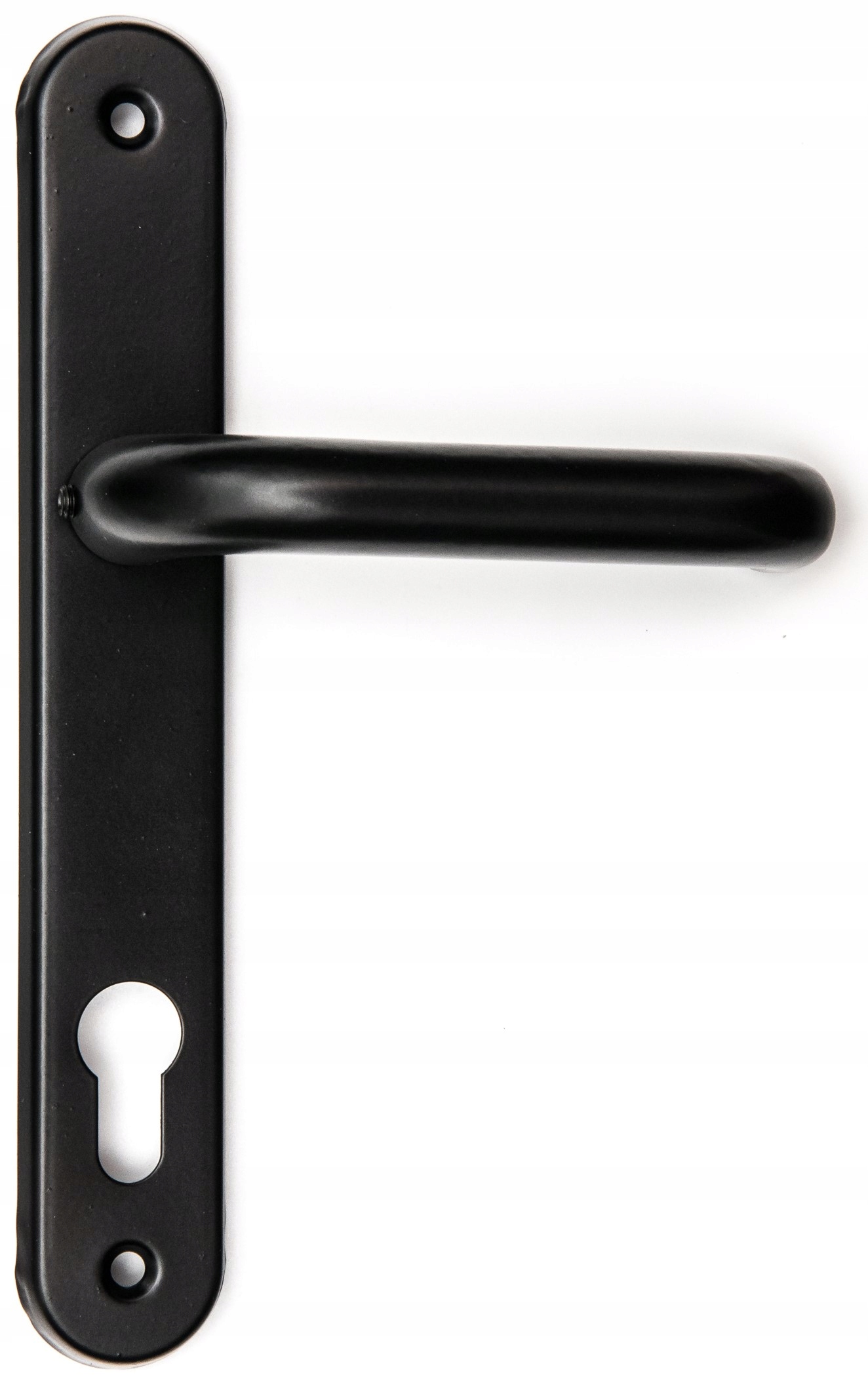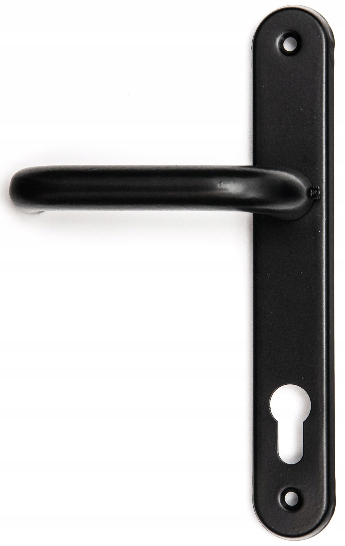 Klamka aluminiowa, malowana proszkowo na kolor czarny. Solidna klamka, często wykorzystywana jest w starszym budownictwie, do furtek i bram oraz w mniej wymagających pomieszczeniach.