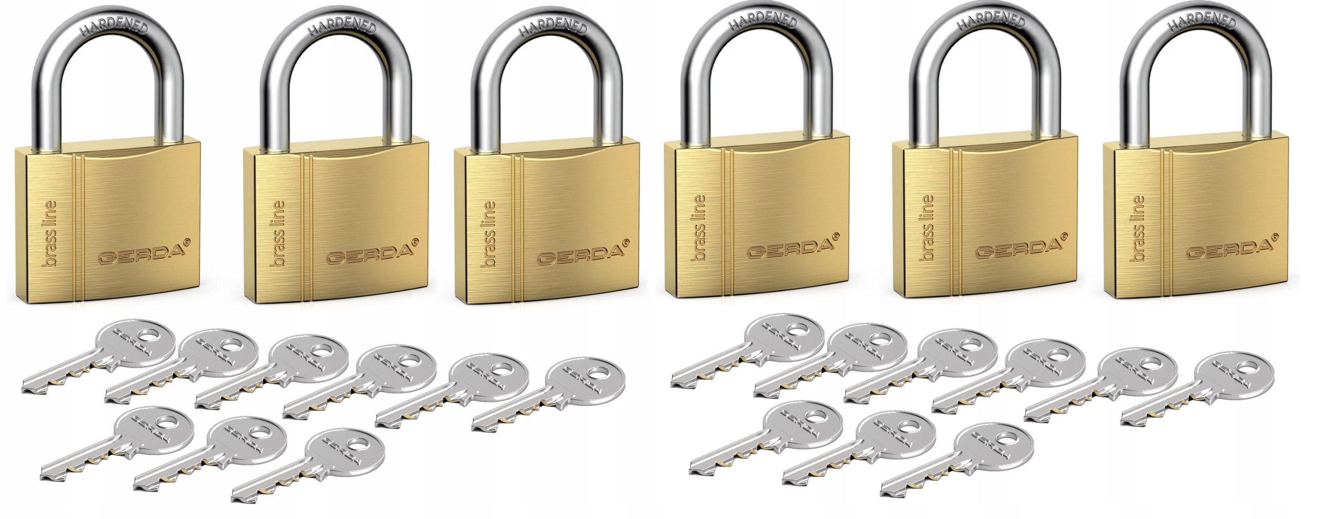 6x Kłódka mosiężna GERDA S40 (KMZ 4010A) SYSTEM JEDNEGO KLUCZA