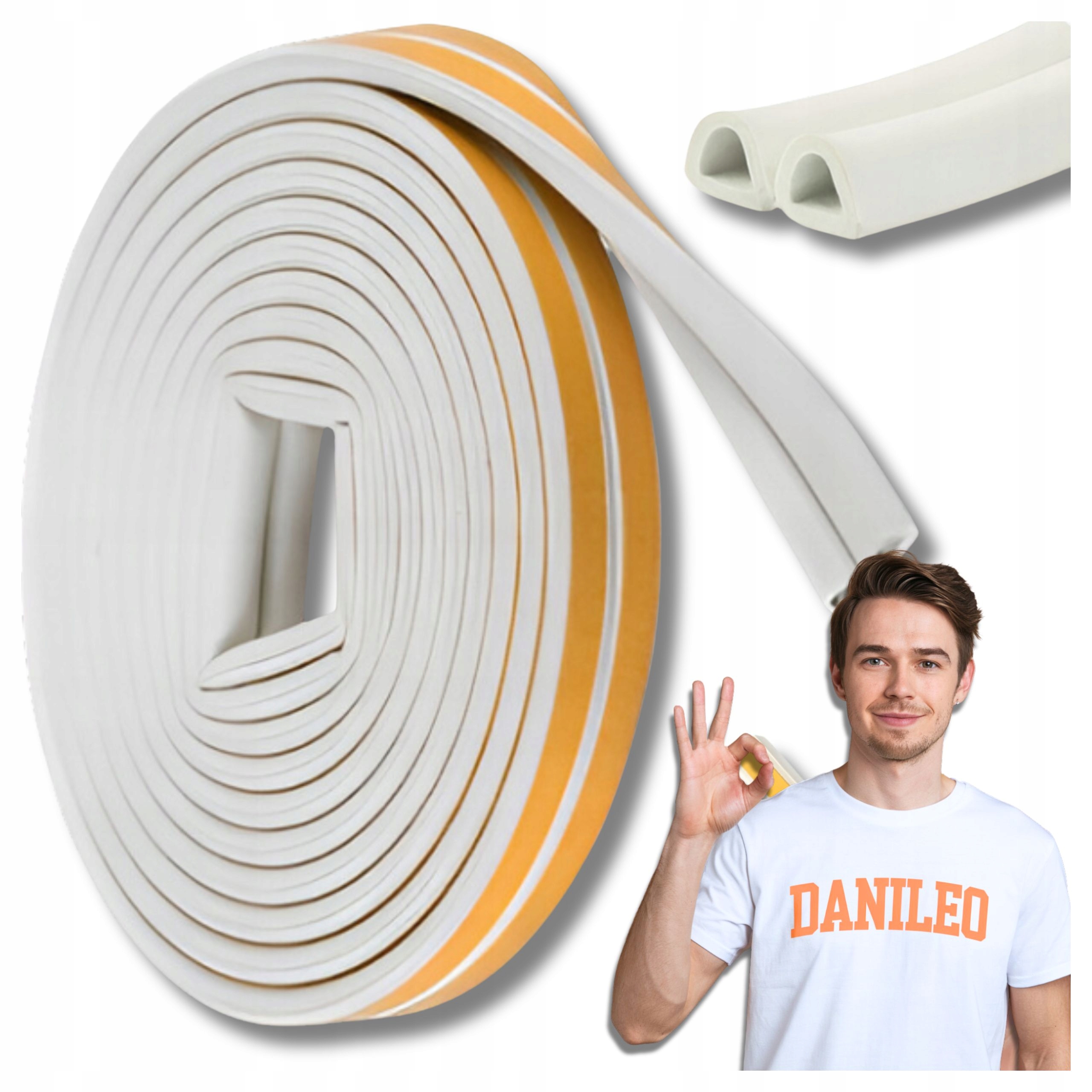 Uszczelka Samoprzylepna Drzwiowa Okien Typ D 9x8mm BIAŁA Uszczelniacz 6m