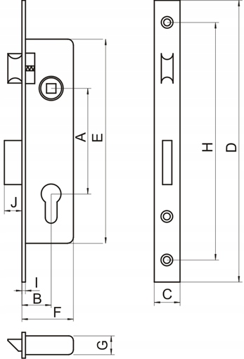 Zamek Lob wpuszczany z zapadką używany do stolarki aluminiowej i PCV.