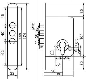 Zamek wpuszczany do drzwi Gerda ZW 500 ocynk złoty