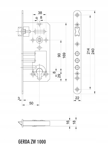 ✅Zamek do drzwi wpuszczany bolcowy trzpieniowy GERDA ZW1000 ATEST 90/50✅