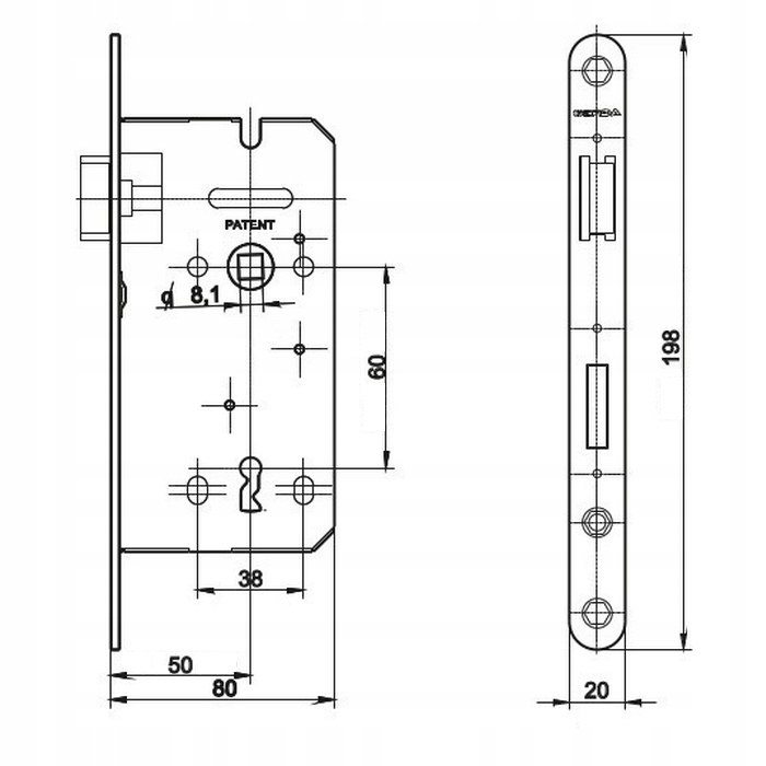 Zamek wpuszczany Gerda ZW 100 na klucz 60/50 mm