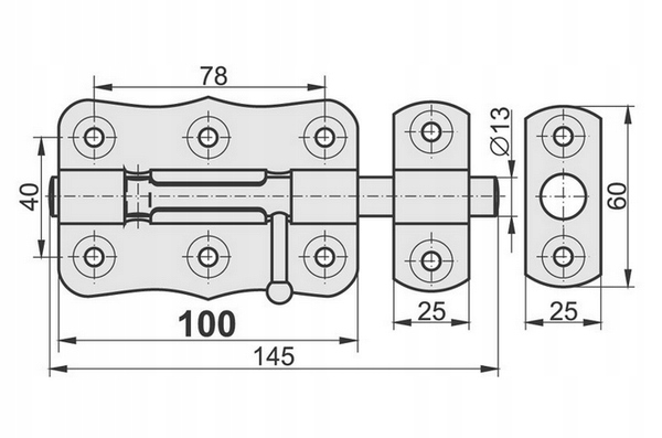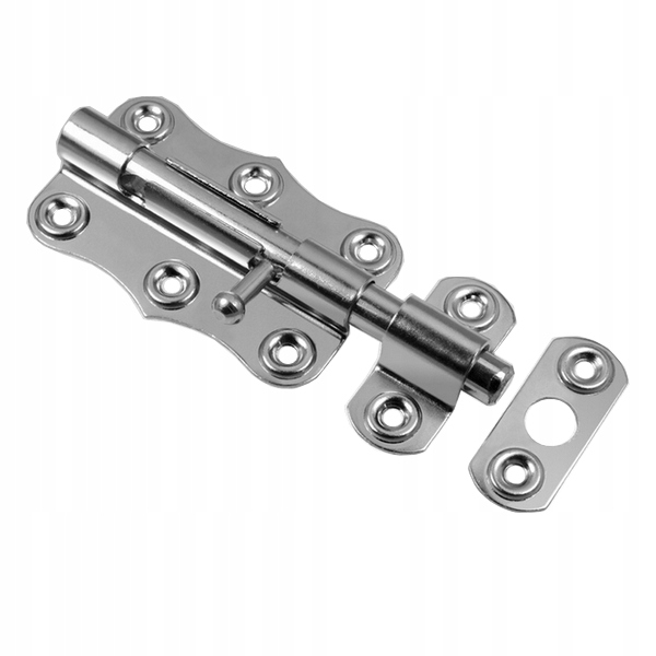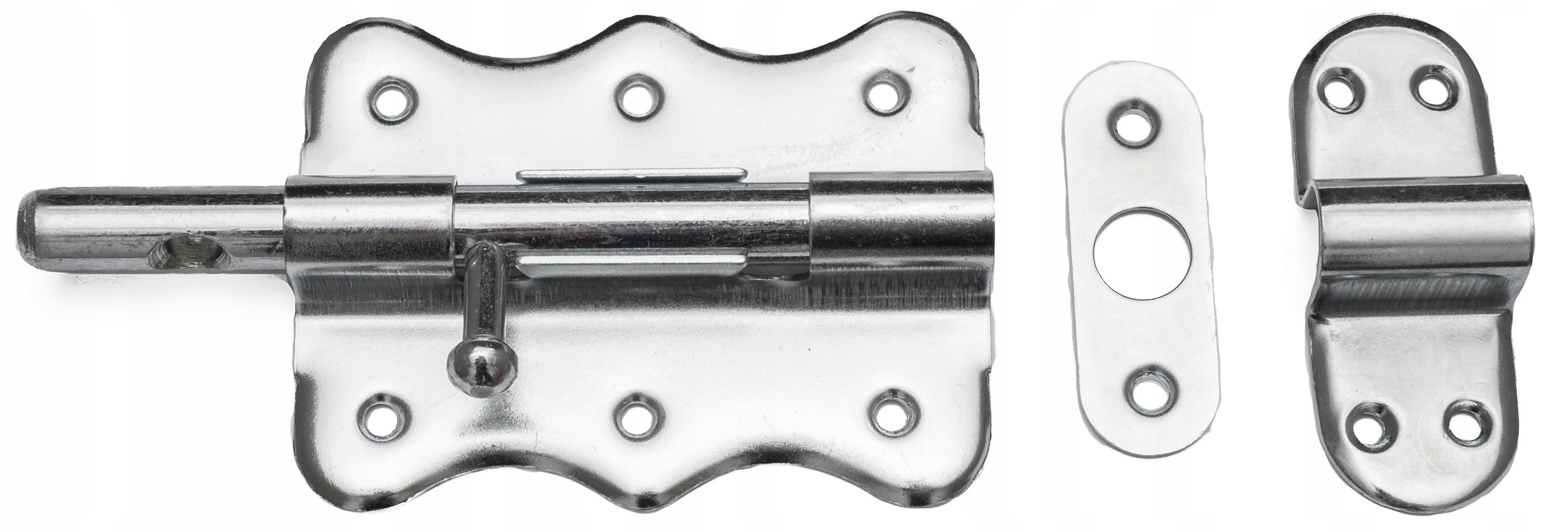 Zasuwka uniwersalna w ocynku srebrnym. Najczęściej stosowana jako zamknięcie dodatkowe do lekkich drzwi, szafek i mebli.
