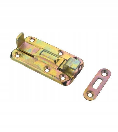 Zasuwka wykonana z blachy ocynkowanej. Najczęściej montowana do lekkich drzwi, mebli.