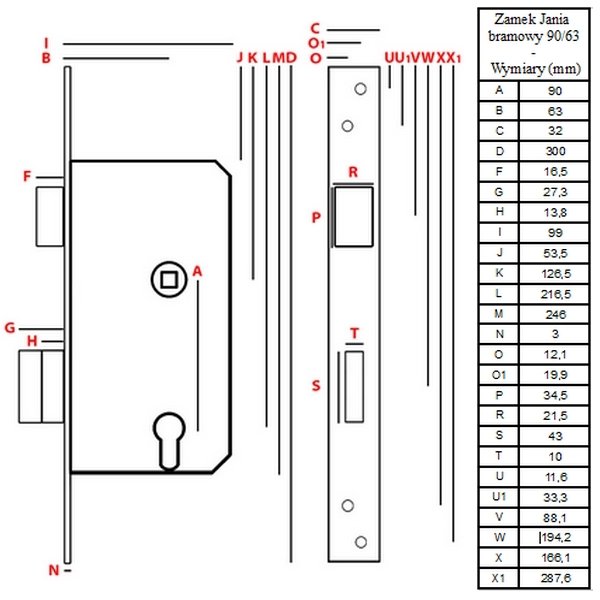 JANIA Zamek 90/63 bramowy na wkładkę lewy Z111