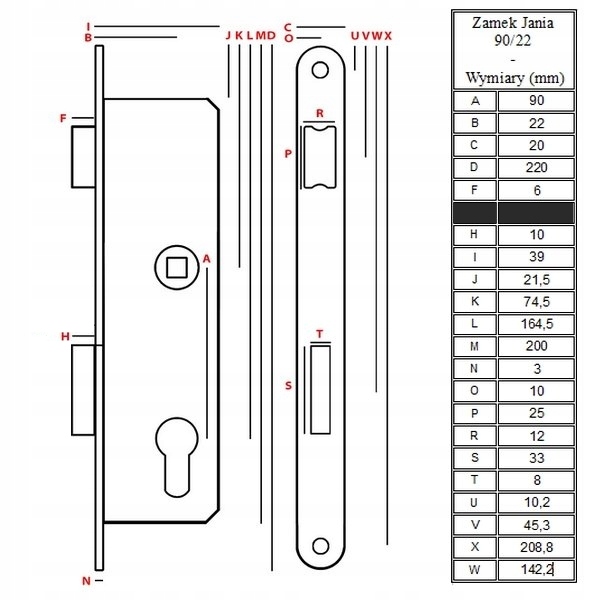 ✅Zamek Wpuszczany Wąski Jania 90/22 ROLKA na klucz - Uniwersalny i Bezpieczny✅