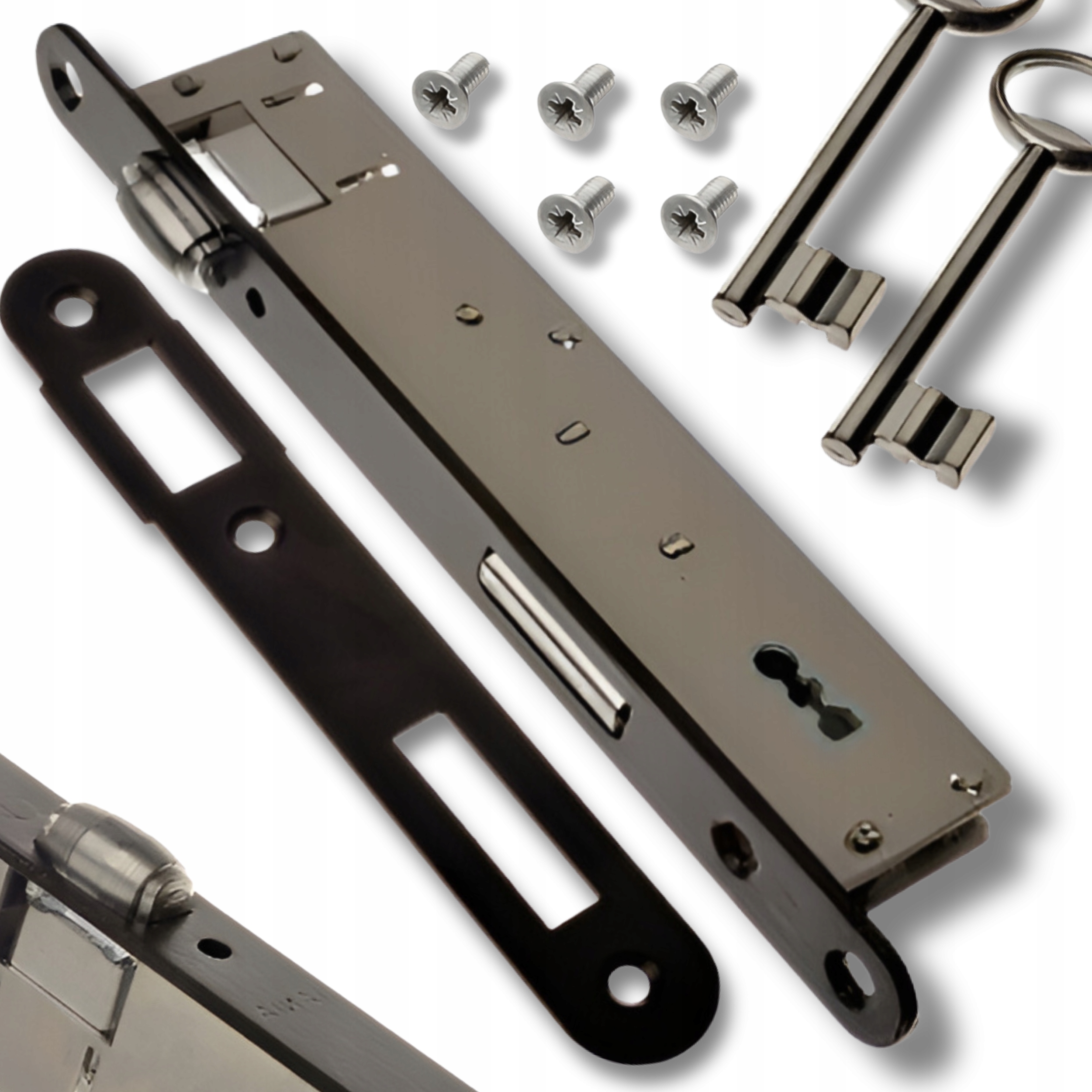 - W komplecie: Zamek - x1, Klucz - x2, Zaczep - x1, Wkręty - x5