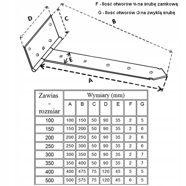 Solidnie wykonany zawias z blachy ocynkowanej (ocynk złoty). Stosowany do budowy altanek, montażu drzwi itp.
