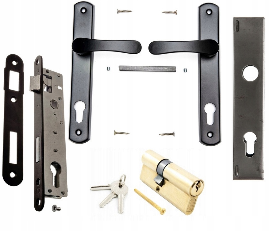 Komplet do furtki zamek + klamka + wkładka + puszka CZARNY