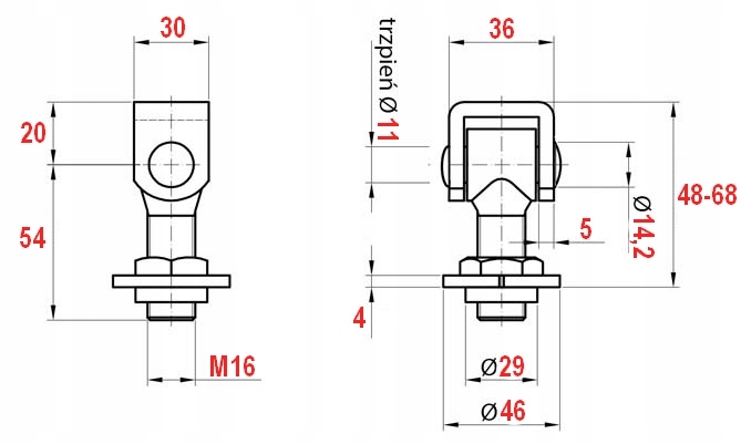 Hak do zawias pasowy zaczep do wmurowania fi 16