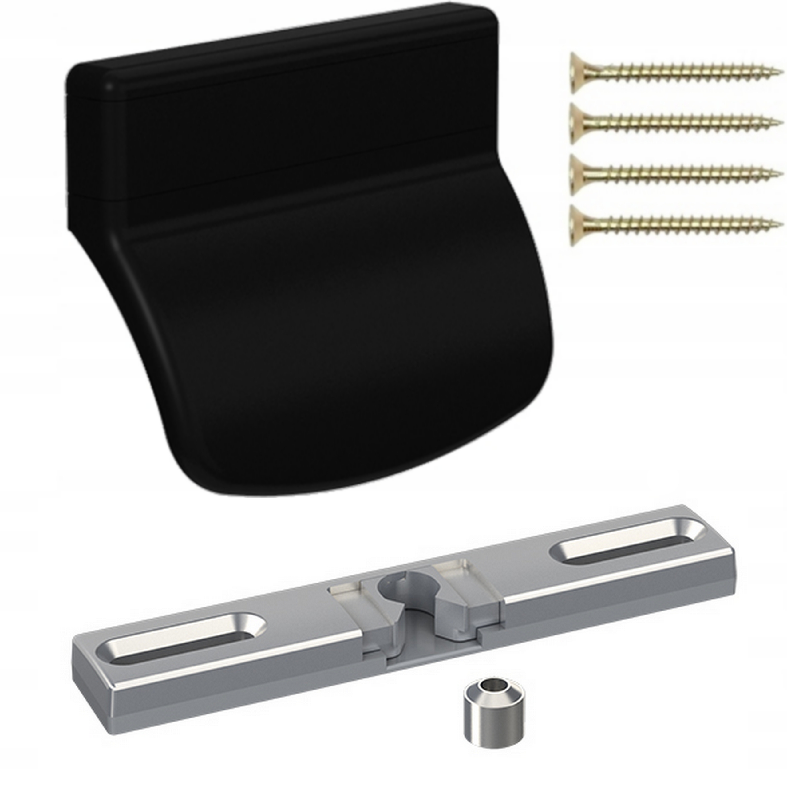 Zatrzask balkonowy do słupka ruchomego z rolką + pochwyt Czarny