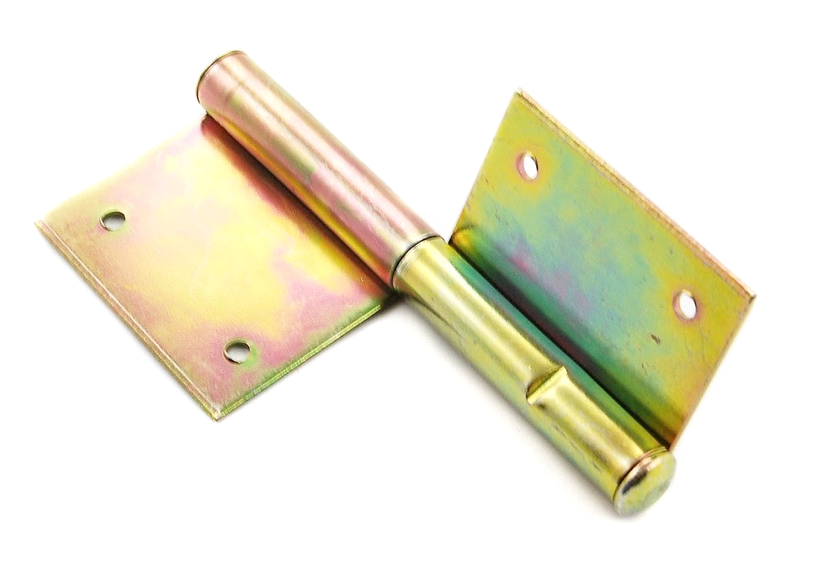 Zawias wykonany z blachy ocynkowanej na złoto.