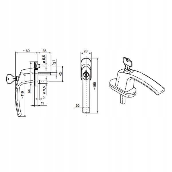 - w komplecie 1 kluczyk (każda klamka ma taki sam kluczyk)