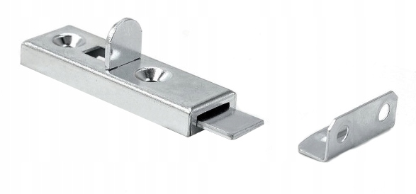 Zasuwka meblowa ocynkowana na kolor srebrny, stosowana jest jako zamknięcie do szafek i barków.
