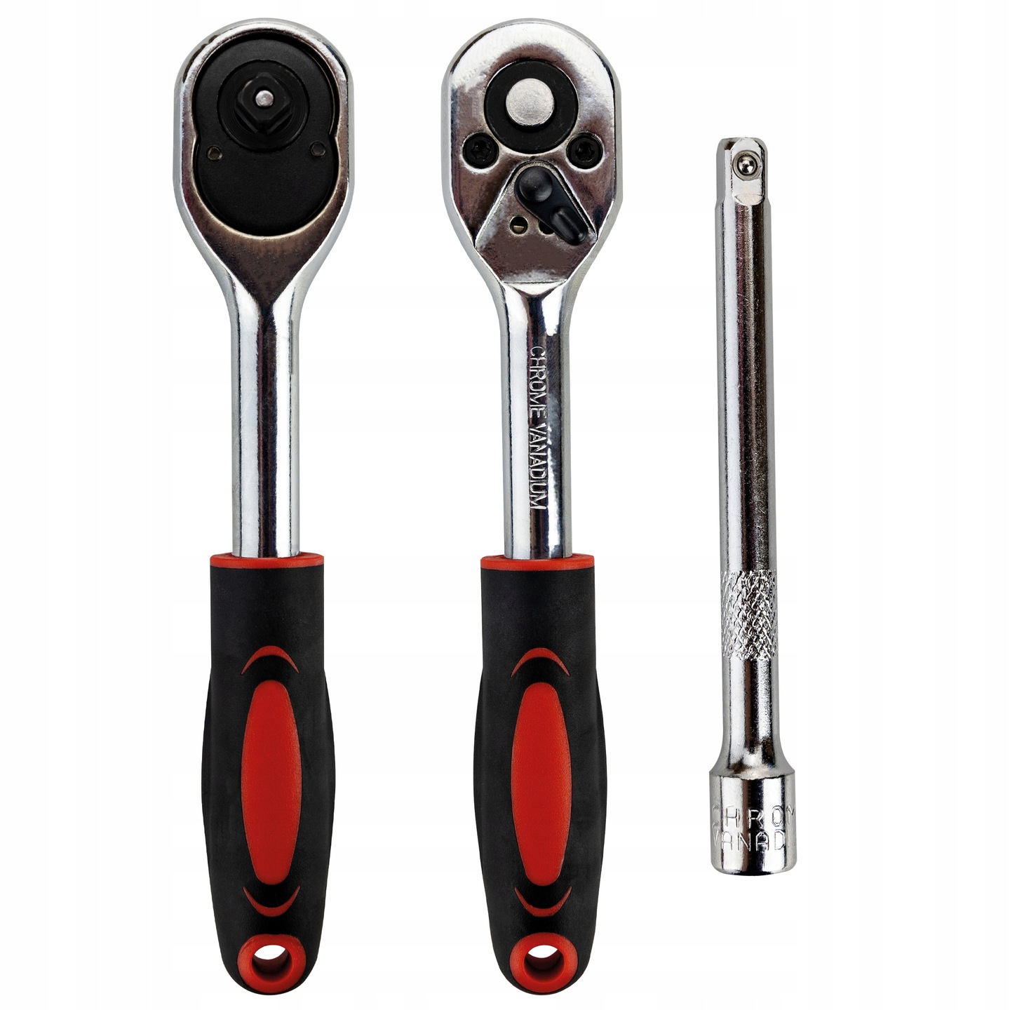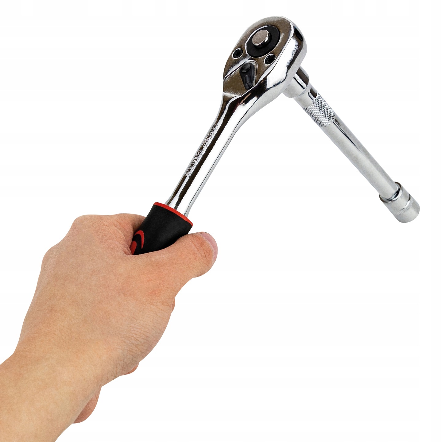 Rączka grzechotki jest pokryta antypoślizgową powłoką, co gwarantuje pewny chwyt nawet przy mokrych lub oleistych rękach. Dodatkowo w zestawie znajduje się przedłużka o długości 12 cm, dzięki której można dokręcać śruby w trudno dostępnych miejscach.