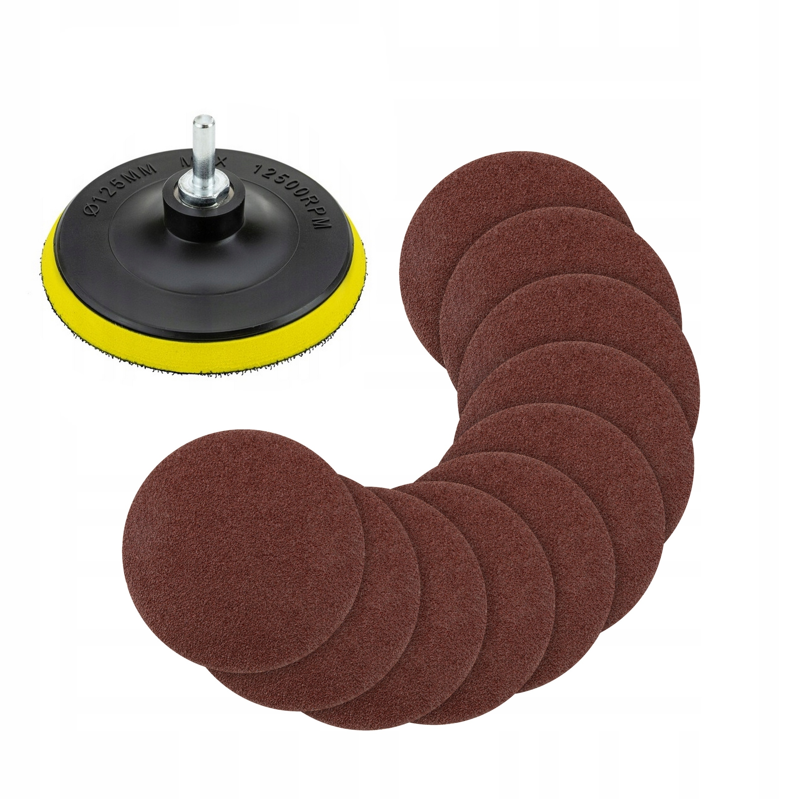 Dysk szlifierski 125 mm to przyrząd kompatybilny ze szlifierkami kątowymi. Dodatkowo dzięki wyposażeniu w uniwersalny adapter, można podłączyć go do standardowej wiertarki. Na dysku znajduje się zamocowany na stałe rzep, do którego w bardzo łatwy sposób można wymieniać dysk ścierny po zużyciu na nowy. W zestawie dołączono 10 sztuk krążków papieru ściernego.