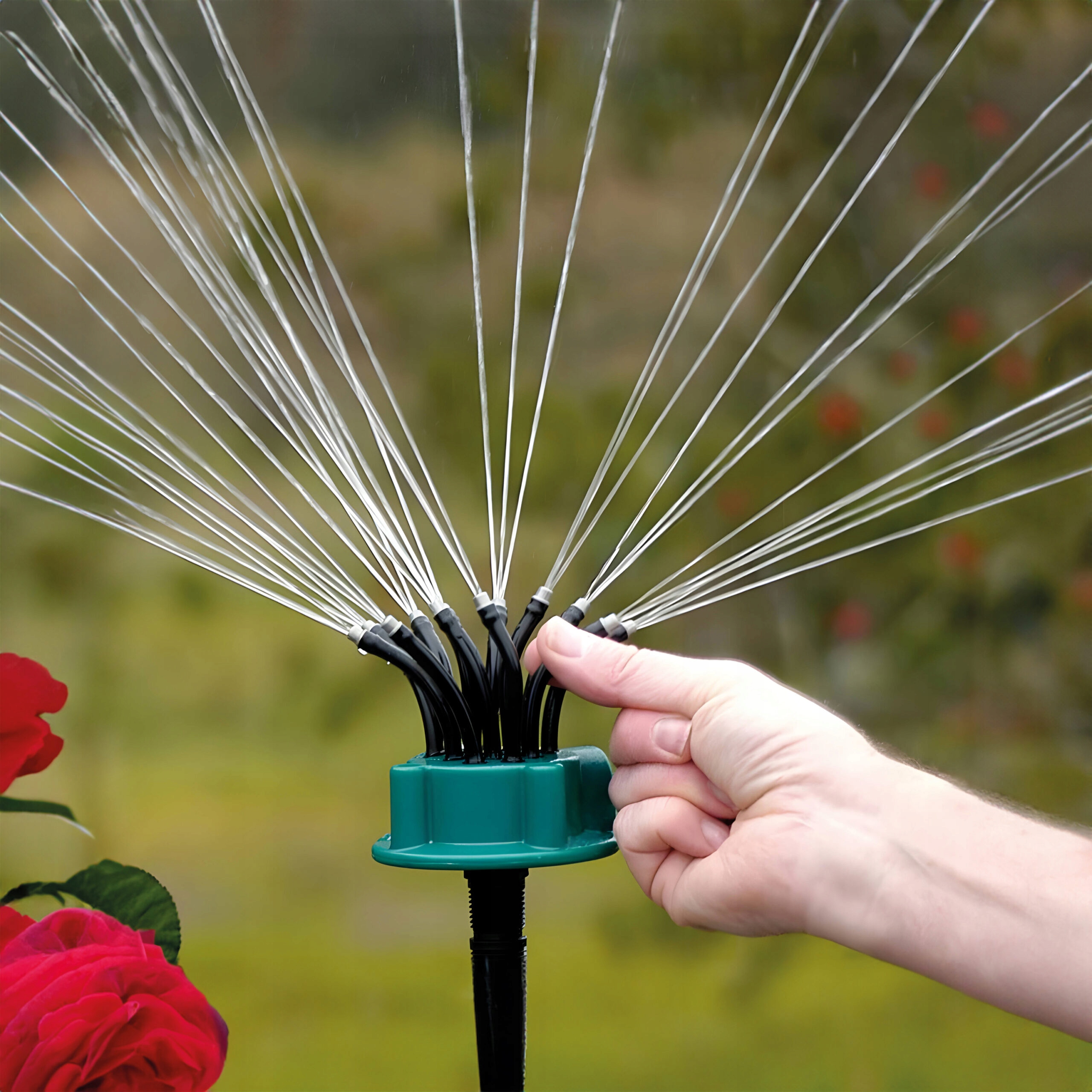 Zraszacz ogrodowy to narzędzie niezbędne do podlewania i nawadniania. Dzięki niemu można odpuścić sobie bieganie po ogrodzie z wężem, ponieważ oprócz postawienia w odpowiednim miejscu i podłączenia do niego wody, nie angażuje bardziej człowieka. W tym czasie można wykonać mnóstwo innych czynności związanych z ogrodem, domem czy odpoczynkiem. Oprócz tego zraszacz zapewnia równomierne dozowanie wody i nie trzeba się martwić o przypadkowe przelanie roślin konewką. Na naszej aukcji dostępny jest zraszacz ogrodowy z 12 dyszami. Wykonany z wysokiej jakości materiałów – ABS, PVC. Zraszacz posiada stabilną konstrukcję, którą umieszcza się bezpośrednio na ziemi bez konieczności wbijania. Dodatkowo za pomocą elastycznych dysz możliwa jest regulacja obszaru działania i odległości podlewania. Każde dysza posiada 3 otwory w różnych kierunkach, umożliwiające zraszanie terenu w obrębie 360° na odległość ok. 5 – 10 m i podlanie terenu o powierzchni ok. 35 m² w zależności od ciśnienia wody. Zraszacz można użyć na 3 sposoby – umieścić bezpośrednio na ziemi, wbić w ziemię za pomocą szpikulca lub powiesić np. na ogrodzeniu. Posiada dwa rodzaje złącz – 1/2’’ i 3/4’’.