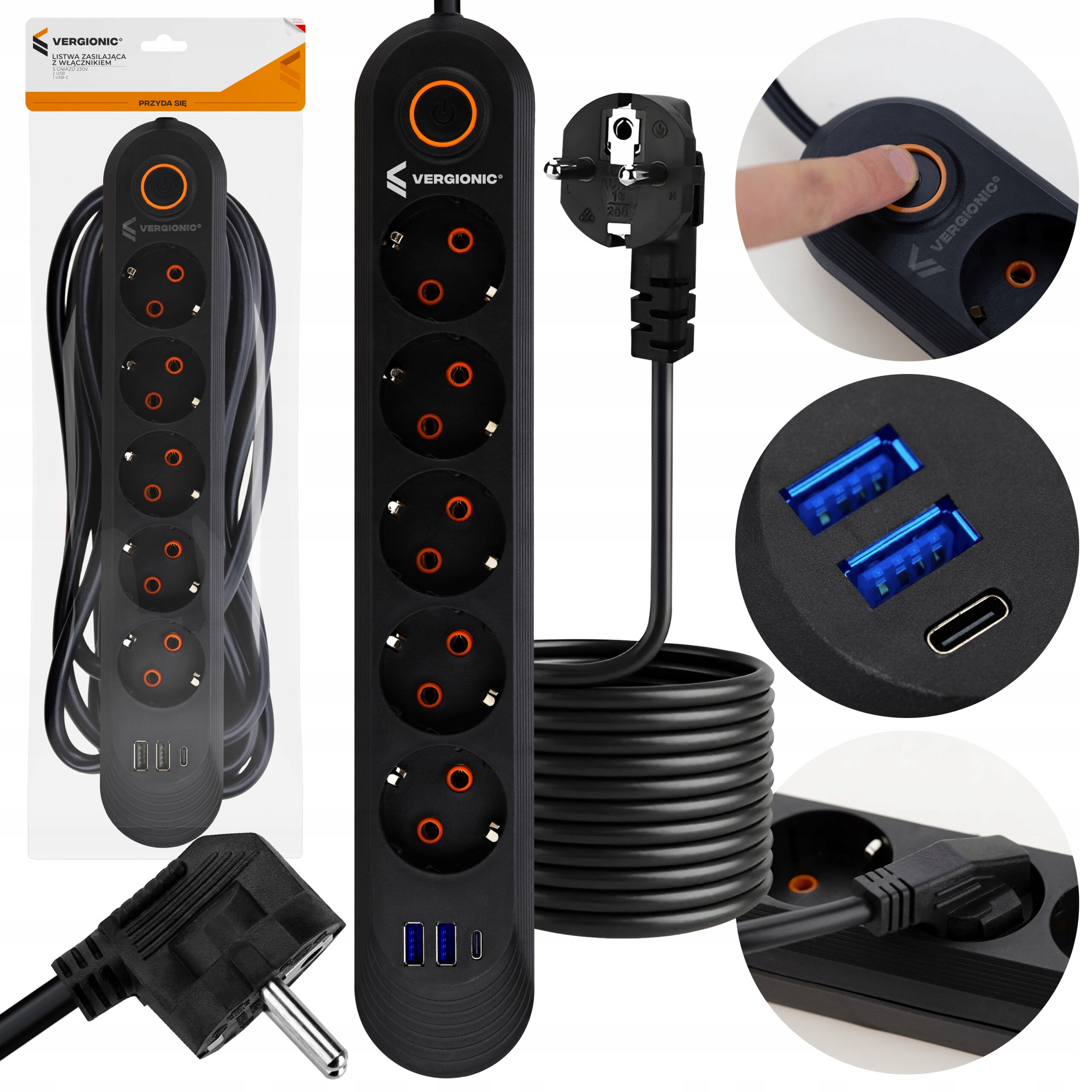 - Długim przewodem umożliwiającym podłączenie urządzeń oddalonych od gniazdka