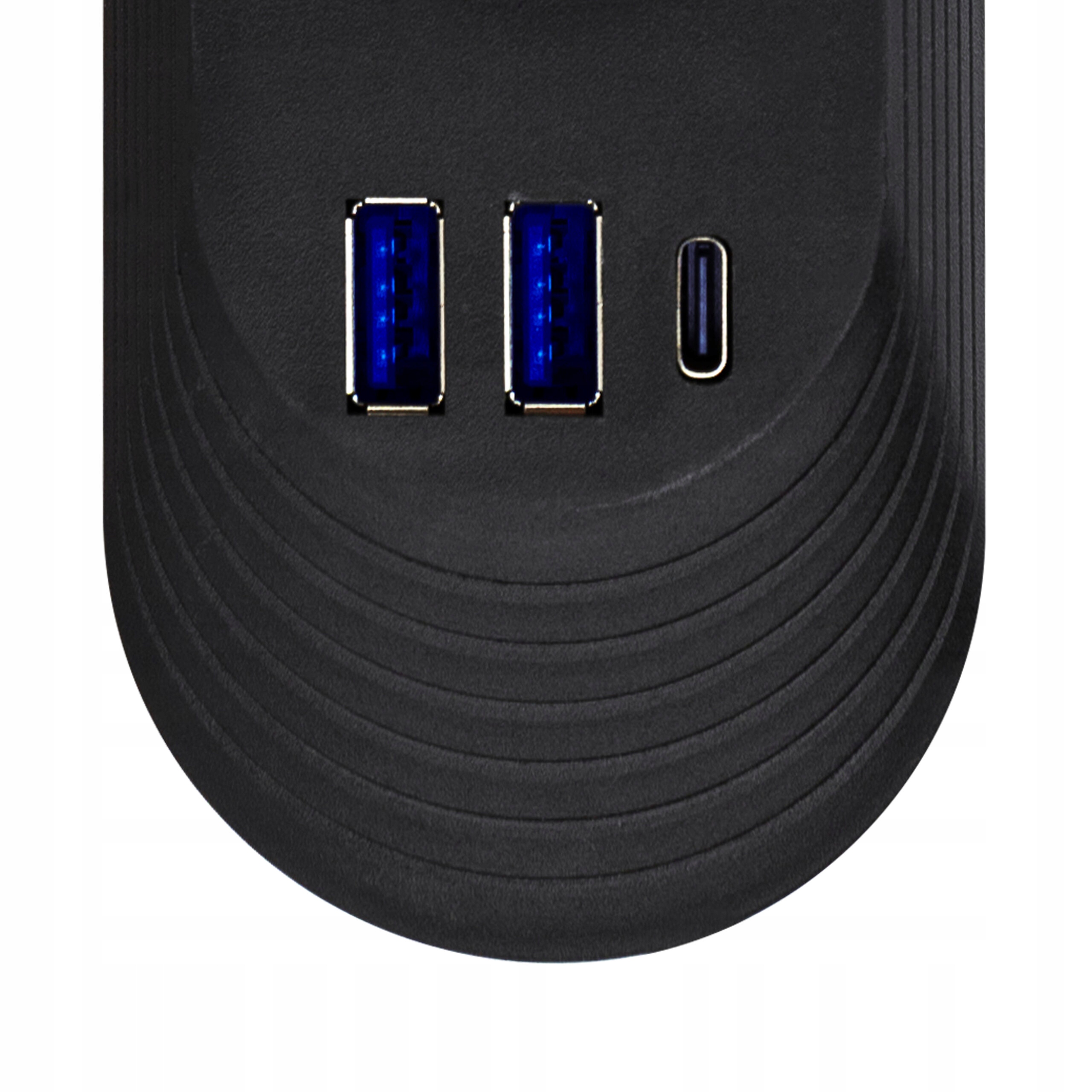 - Podświetlanym przełącznikiem dzięki któremu odłączymy zasilanie wszystkich urządzeń na raz