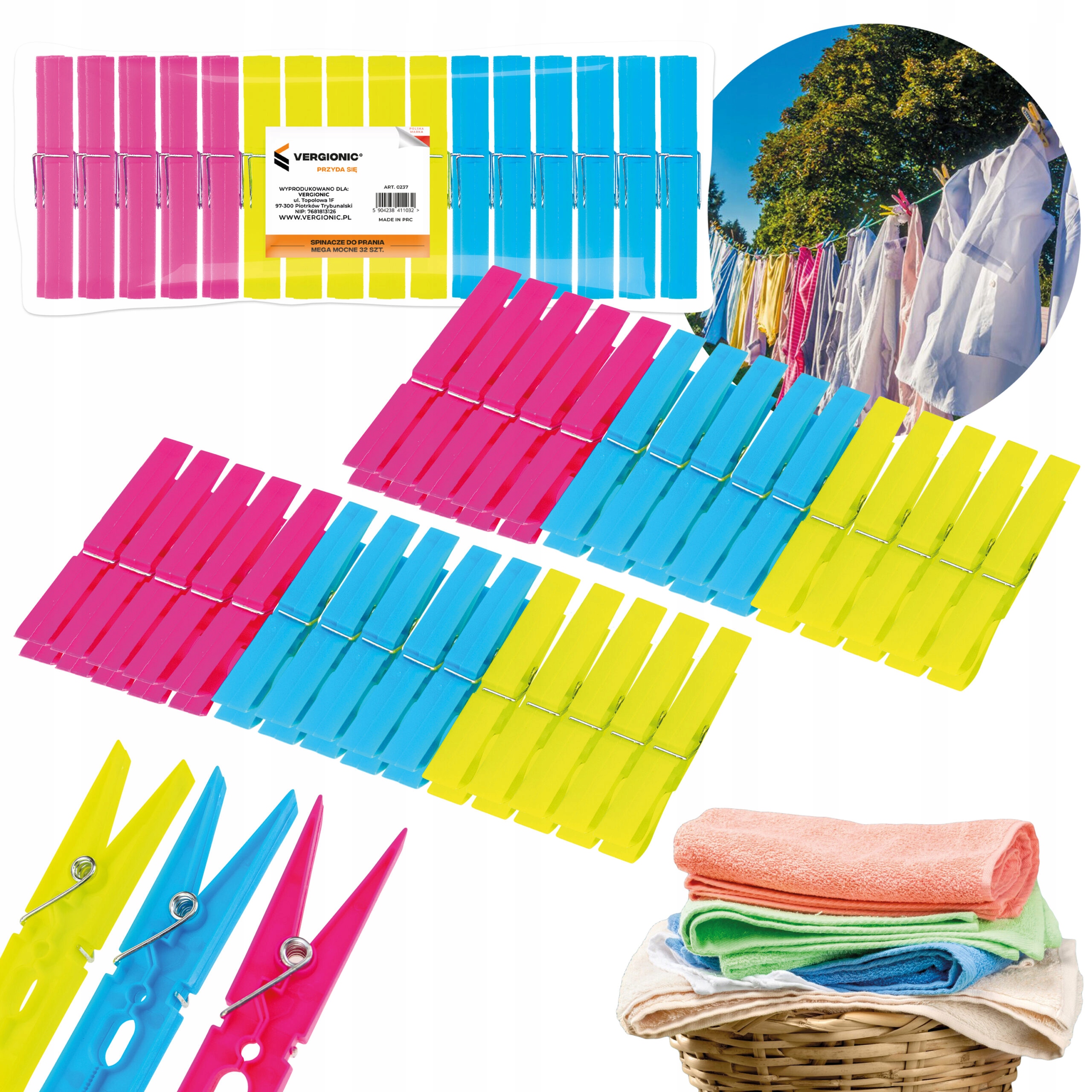 - Mocnym zaciskiem, dzięki czemu spinacze utrzymają pranie nawet pod wpływem silnego wiatru